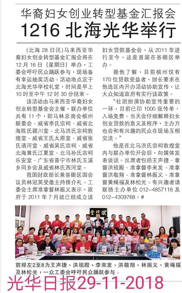 chinesewomenfoundation News & Events December 19, 2018 华裔妇女创业转型基金汇报会1216北海光华举行 Date : 16/12/2018 Sunday 星期日 Venue : SJK (C) Kwang Hwa Seberang Perai 北海光华学校礼... Read More